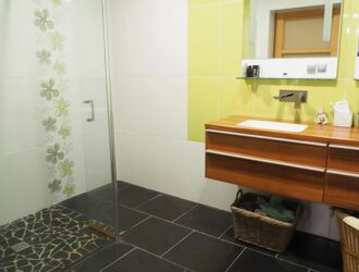 Alors que l'étage vous offre deux chambres spacieuses et une autre salle de douches avec WC.